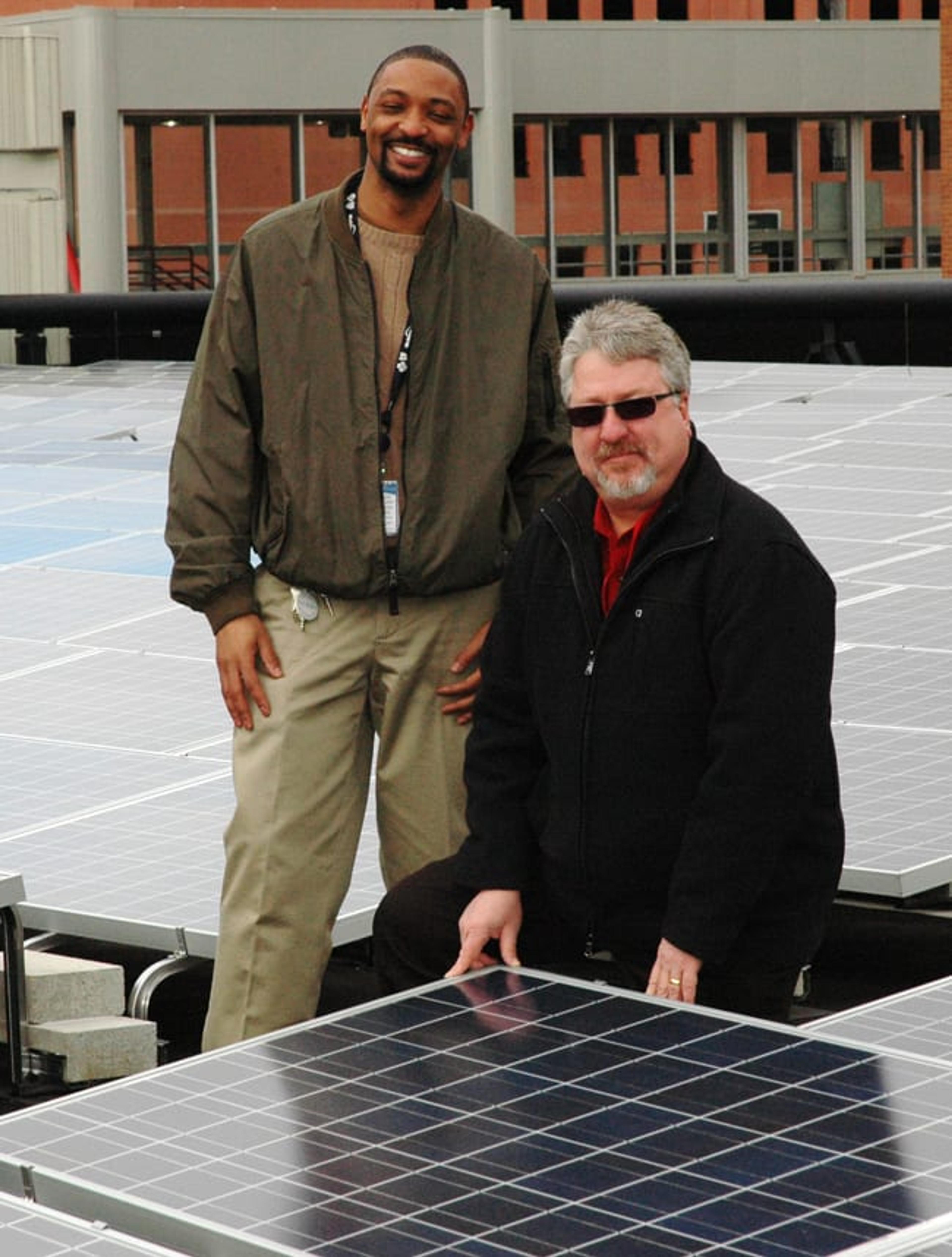 DTE has installed the 200-kilowatt solar energy system on the roof of BCBSM’s four-story parking structure located at the corner of Congress and Beaubien. “The solar energy system is capable of providing enough power for about 40 homes a year, plus 20 percent of the base load energy requirements for the Detroit Tower,” said Chris Meyer, manager, Facilities and Support Services. One of the major benefits is the contribution made toward preserving a green environment. “Since last August, the solar energy system has produced more than 91,000 kilowatts of power,” Meyer said. “That’s enough power to avoid producing 65 metric tons of carbon dioxide and protect 24 acres of trees.” The best view of the 31-000 square-foot solar energy system is from the Detroit People Mover. Each month thousands of people can see the system capturing renewable energy from the sun during their ride. “It’s the largest solar energy system in downtown Detroit,” Meyer said. “It’s good use of urban space, and adds an attractive look to our campus.”