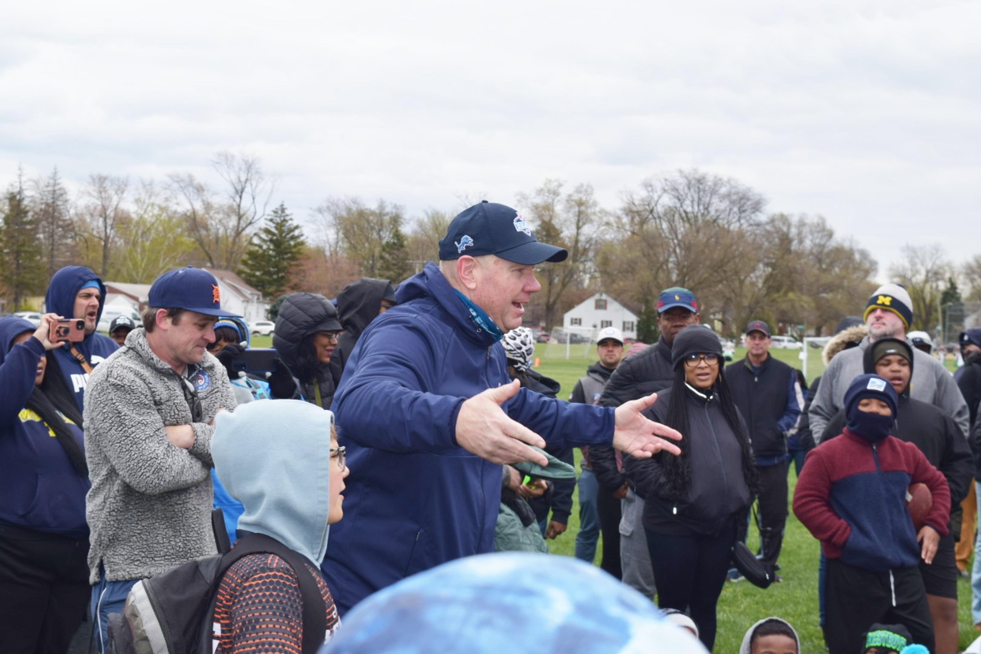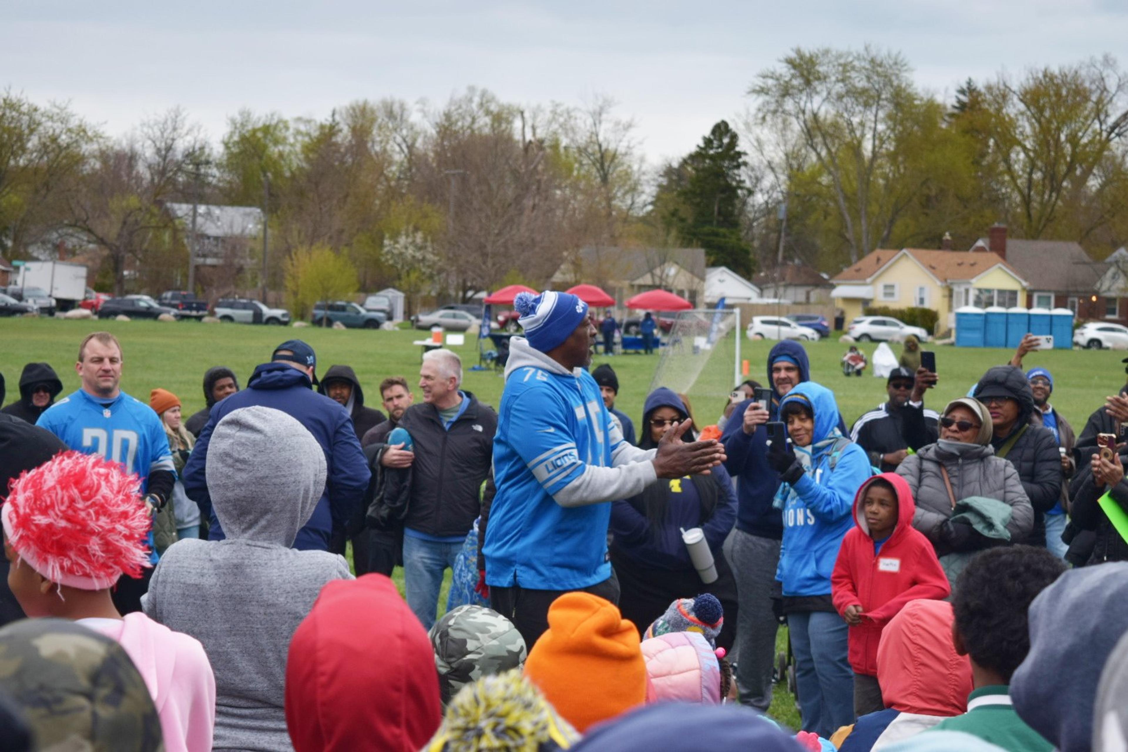 “The draft is expensive, it costs an arm and a leg to get downtown, and the families we serve here in this neighborhood, they’re probably not going to have the chance to go downtown,” Schwarze said. “So, to bring it here to Balduck and give the kids a chance to meet some former Lions players and do some drills I think is a really cool thing and a great way to bless some families.”