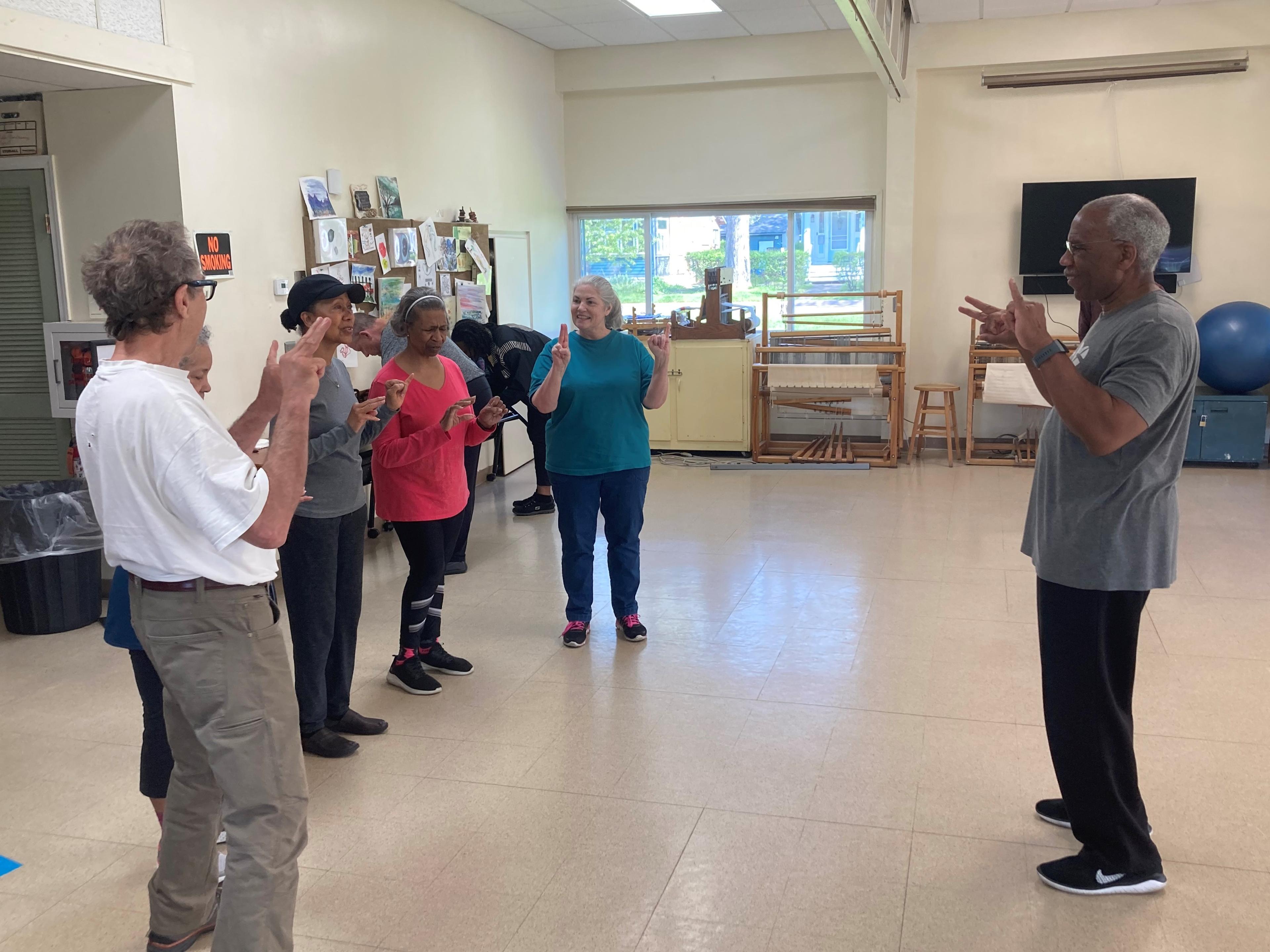 “These work both sides of the brain,” Harris told the class. “Basically, when you walk, you subconsciously work both sides of the brain. But consciously, we don’t usually use both sides of the brain. When you focus on doing these exercises, it seems like it’s hard. It’s not hard, it’s something new.”